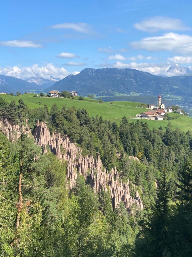 Wir fahren mit dem Bus zur Talstation der Rittnerbahn, die uns nach Oberbozen bringt. Dort beginnt unsere, landschaftlich sehr schöne, gemütliche Wanderung. Wir folgen dem Wanderweg nr.6 durch Wiesen und Wälder übers Riggermoos bis zum Gasthaus Tann (1488 Hm). Weiter führt uns der Weg nach Bad Sieß, wo wir zu Mittag essen. Die nächste Etappe ist Maria Saal, und weiter bis zu den berühmten Erdpyramiden vom Ritten. Von dort gehen wir nach Lengmoos und weiter zum Bahnhof in Klobenstein. Nach einer 20-minütigen Fahrt mit der alten Bahn erreichen wir Oberbozen. Mit der Seilbahn kehren wir wieder nach Bozen zurück.